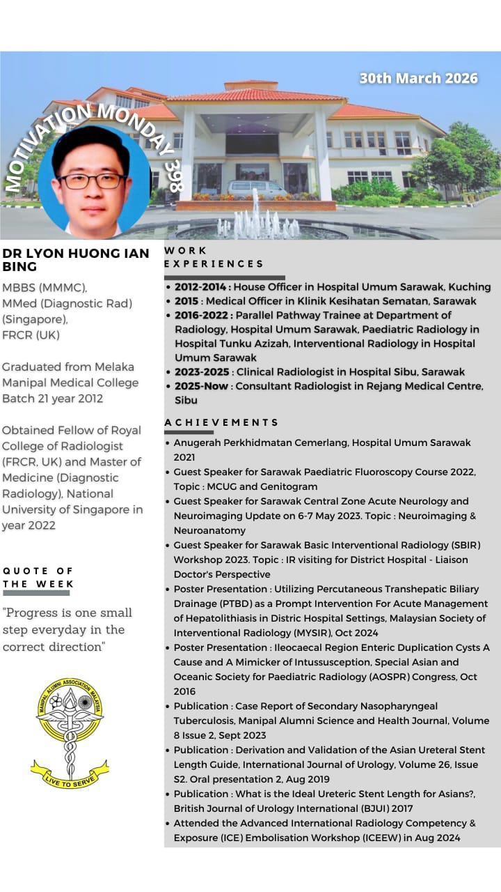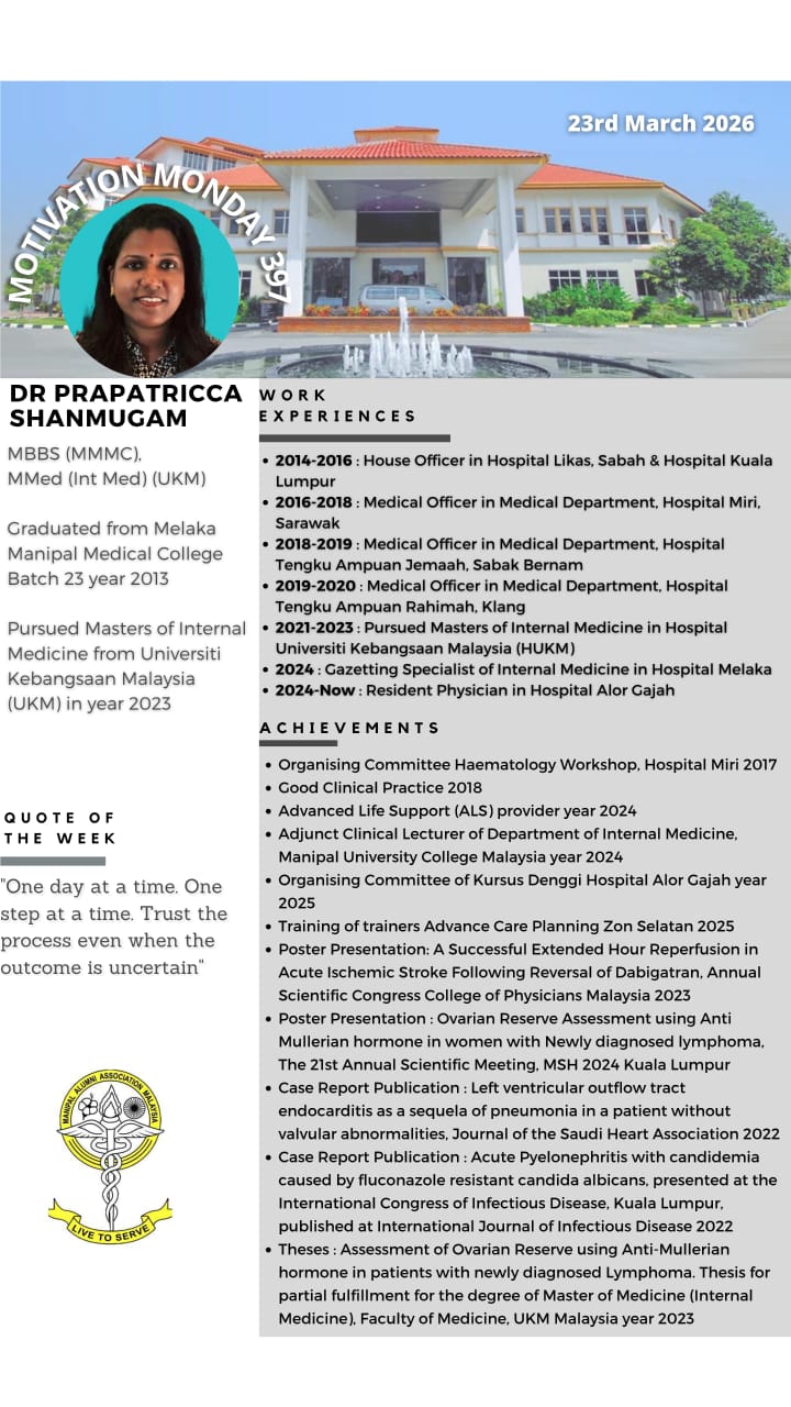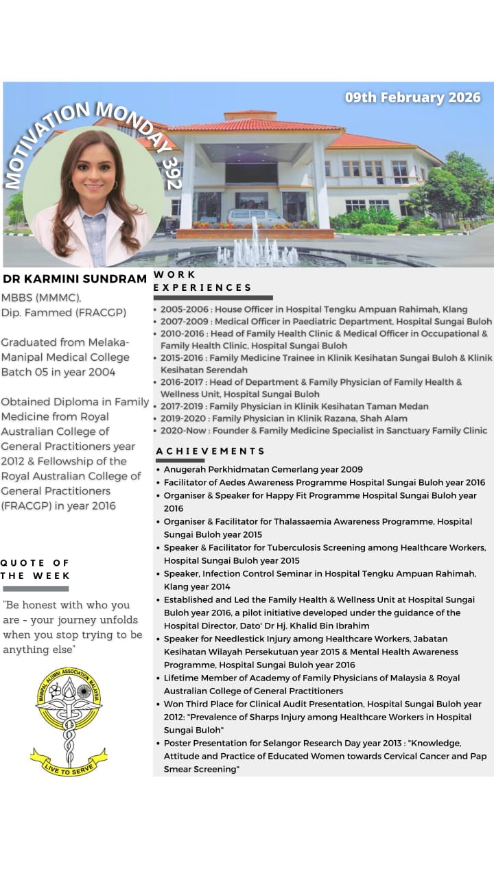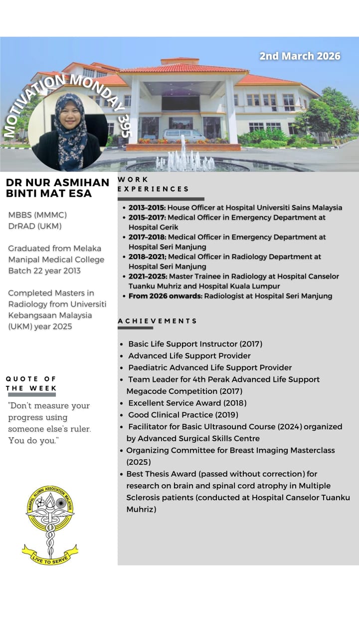 “Motivation Monday” is a collaborative effort between Manipal Alumni & MMMC Student Council since 21 May 2018. This initiative was created as a platform of appreciation for our Alumnis to provide encouragement for our current students. Every Monday, we will be highlighting all the extraordinary achievements of past graduates who are scattered all across the globe. It is an immense honour to be able to showcase our fellow Alumnis bearing the Manipal flag with pride.