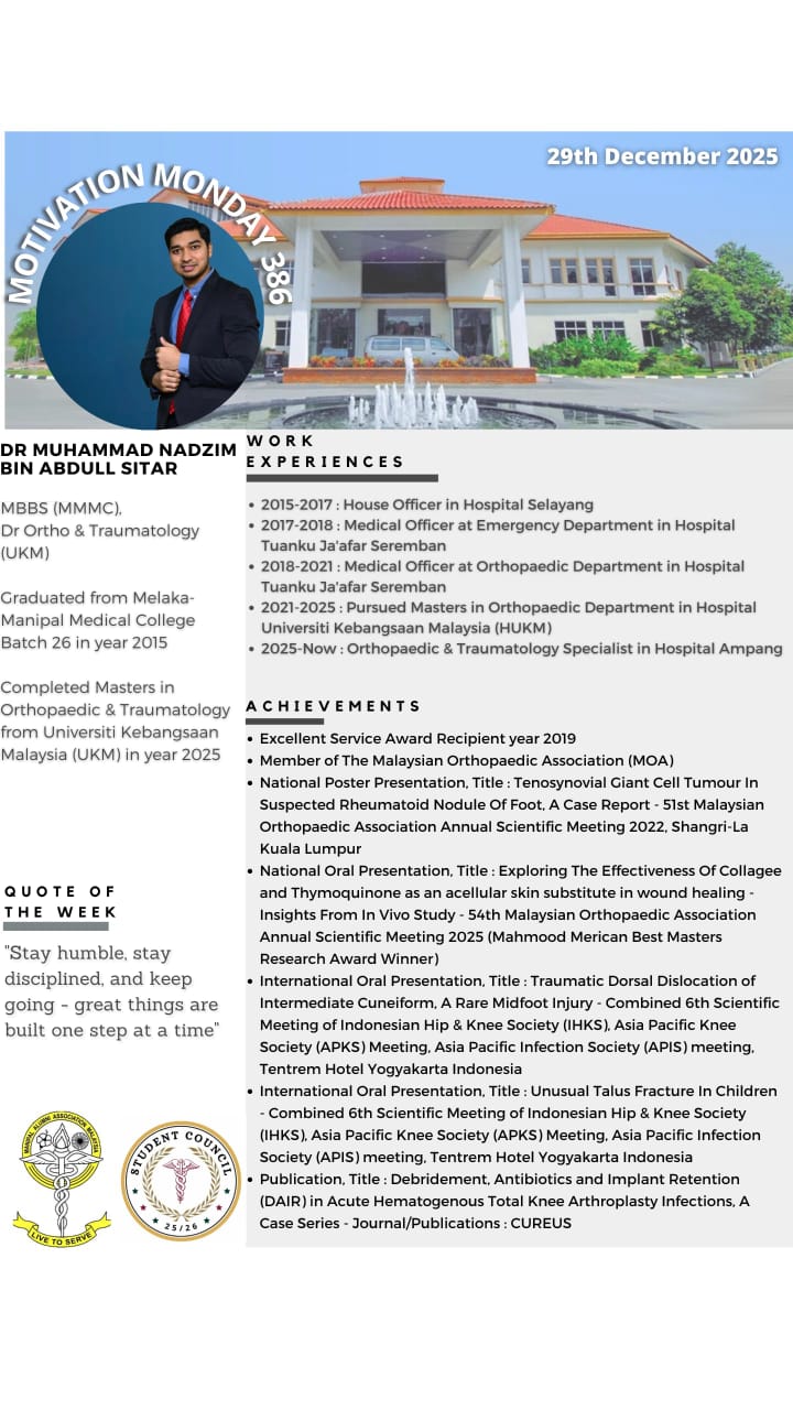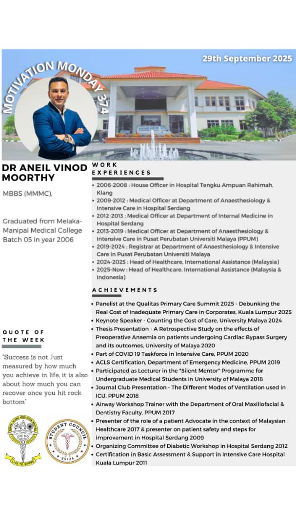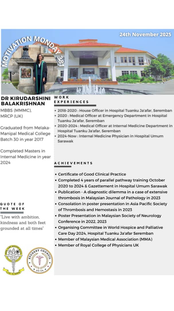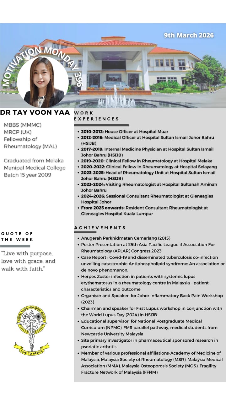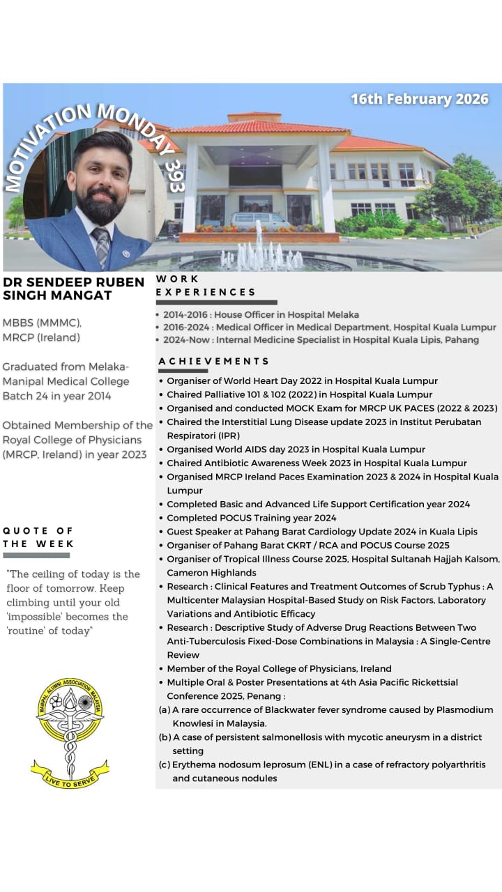 “Motivation Monday” is a collaborative effort between Manipal Alumni & MMMC Student Council since 21 May 2018. This initiative was created as a platform of appreciation for our Alumnis to provide encouragement for our current students. Every Monday, we will be highlighting all the extraordinary achievements of past graduates who are scattered all across the globe. It is an immense honour to be able to showcase our fellow Alumnis bearing the Manipal flag with pride.